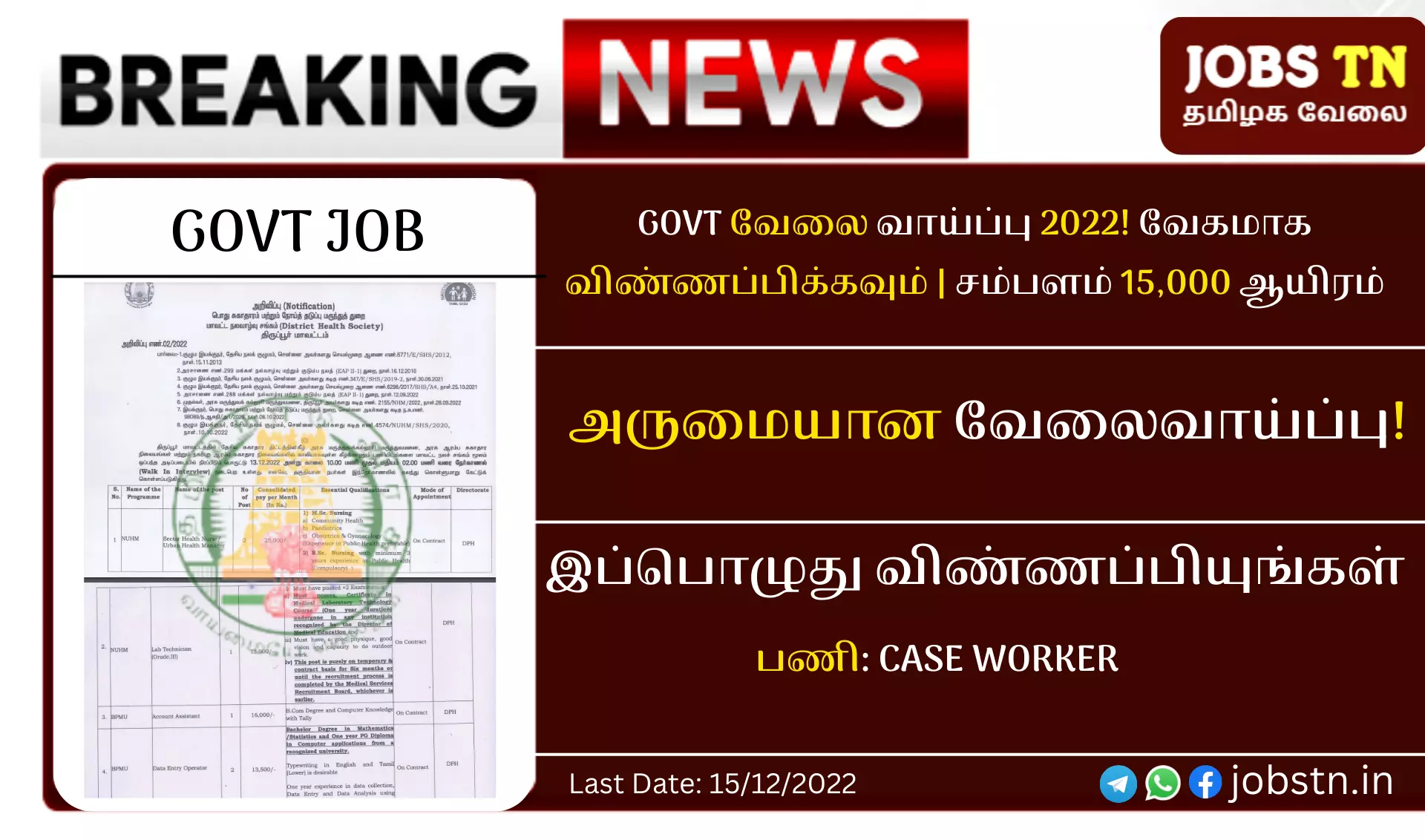COIMBATORE Applications are invited from the eligible candidates for filling up of temporary vacancy of Case Worker post Pdf