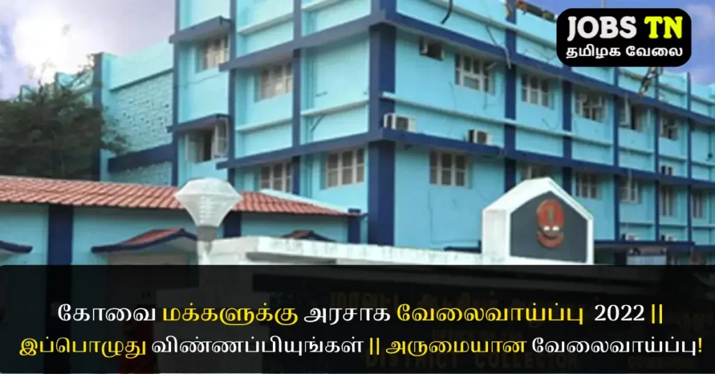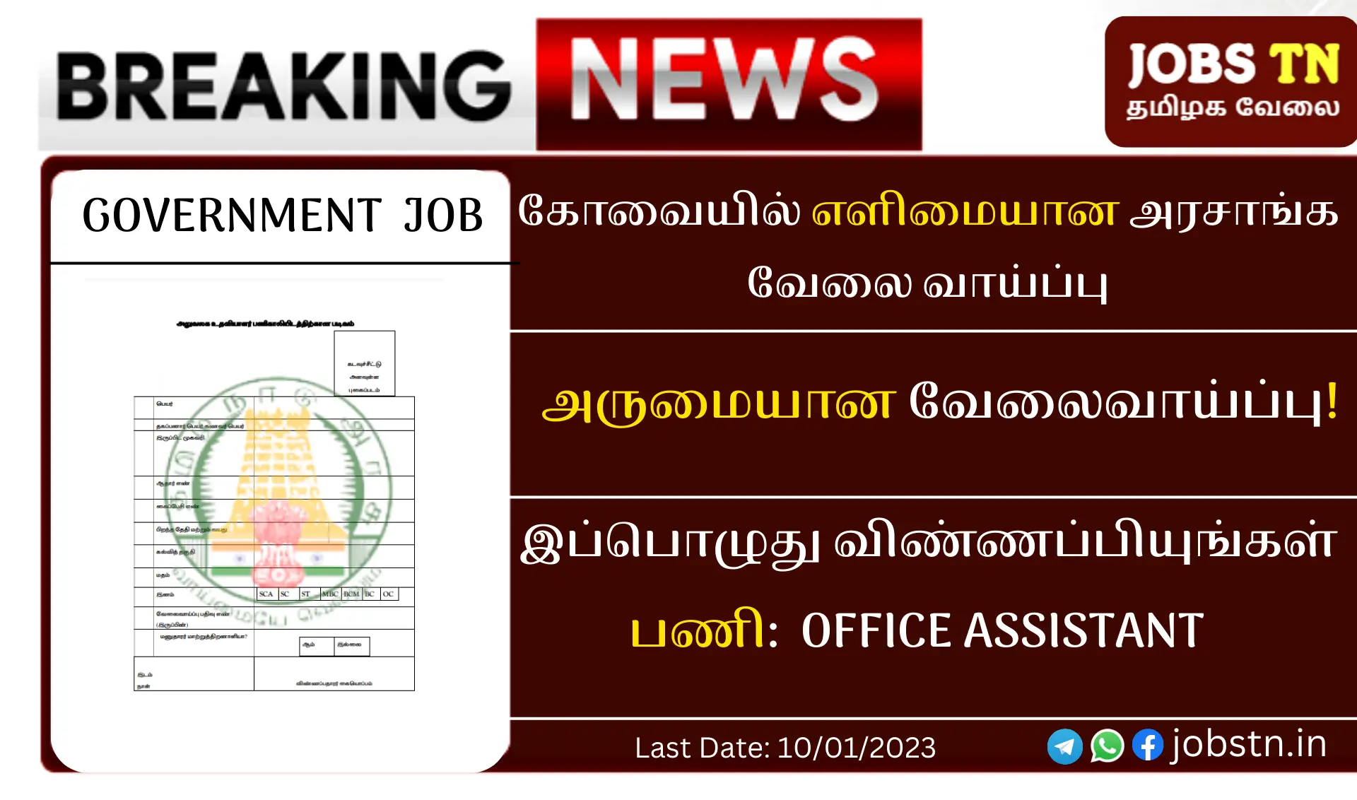 இந்த வேலையின் பெயர் அலுவலக உதவியாளர். இந்த வேலையை நமக்கு வழங்குவது கோயம்புத்தூர் மாவட்டம் தமிழ்நாடு அரசு.