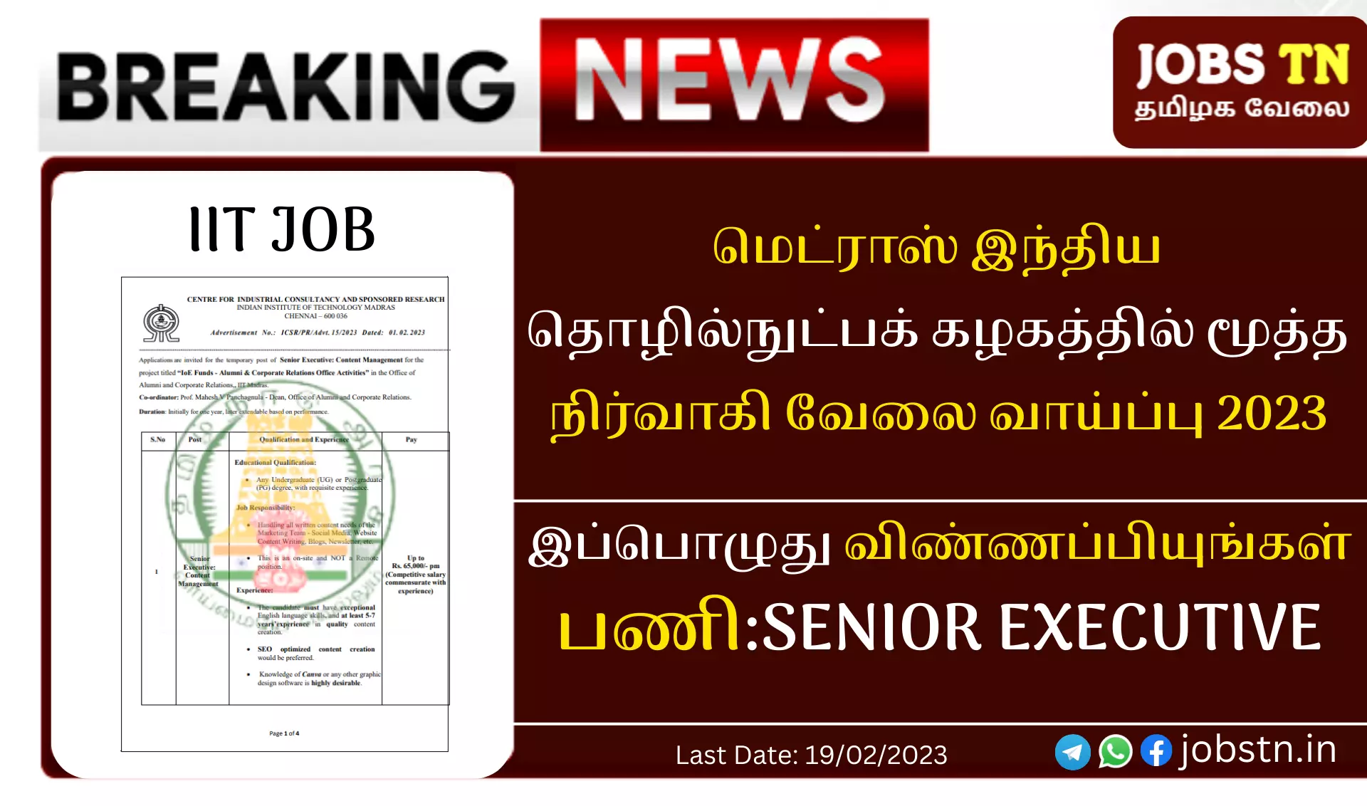 மெட்ராஸ் இந்திய தொழில்நுட்பக் கழகத்தில் வேலை வாய்ப்பு | IIT MADRAS JOB OFFER 2023 | BEST JOB APPLY NOW February 28, 2023February 7, 2023 by Nandha kumar R